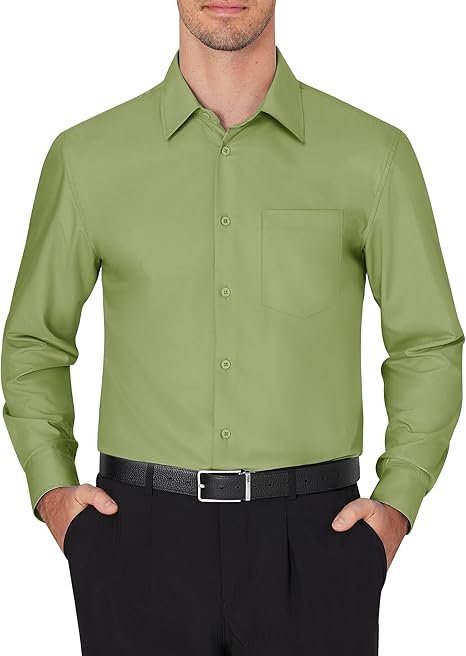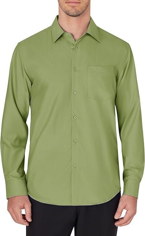 CLASSIC DESIGN: This wrinkle-free shirt features a single chest pocket for small items or decorations. Spread collar, button placket, adjustable cuffs for a classic look that flatters most body shapes