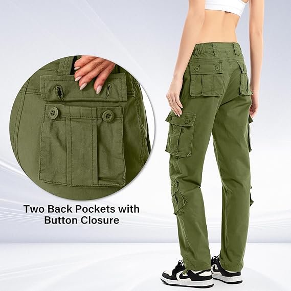 | Cargo pants for women sits at waist, loose fit, straight leg, ties at the waist and legs,A comfortable casual pant for outdoor activities and relaxing weekends. Classic camo pants with Multi-Pocket: Women casual loose pants features 8 Pockets include (2) front hand pockets; (2) buttoned cargo pockets; (2) leg pockets; (2) buttoned rear pockets. 95% Cotton,5% Spandex, Sweat-absorbent,Wear and stain resistant Cotton breathe freely, wrinkle resistant, stylish, and stretch fabric for enhanced movement and comfort. These cool girl style cargo pants can be paired with crop tops, basis T-shirts, cool jackets, casual hoodies, high heels, sneakers, etc. for spring, summer, fall and winter. |