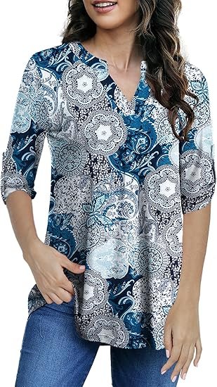 Womens Tops Dressy Casual 3/4 Sleeve Shirts Tunic Blouses Plus Size Tops for Women