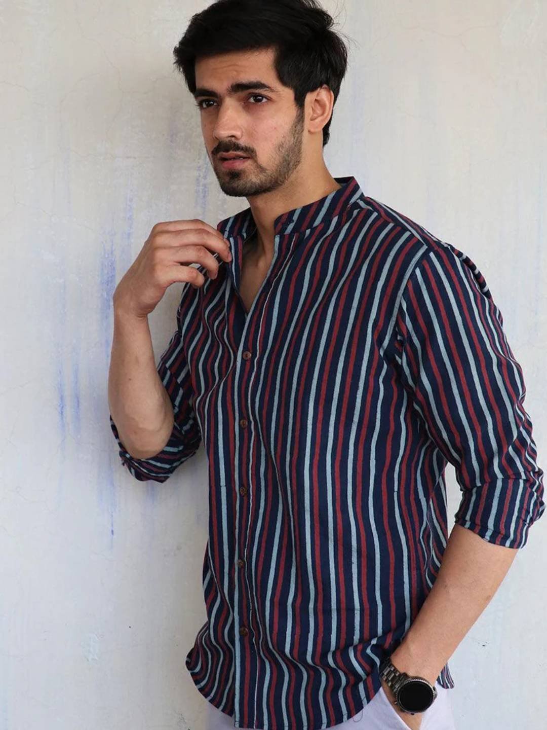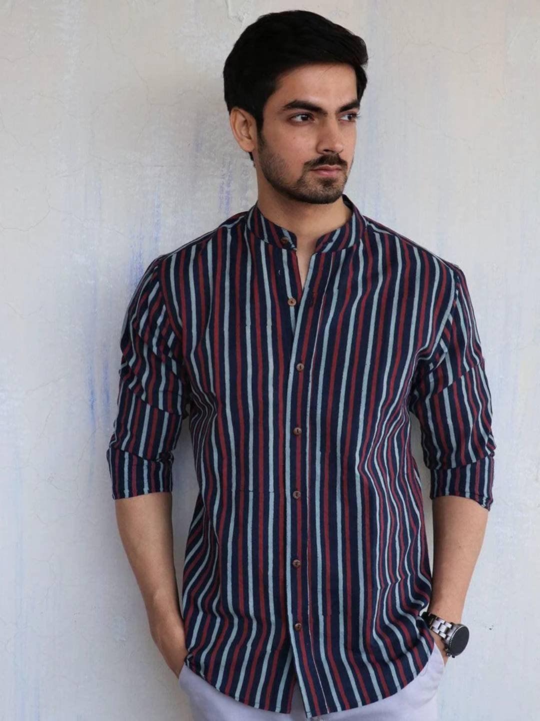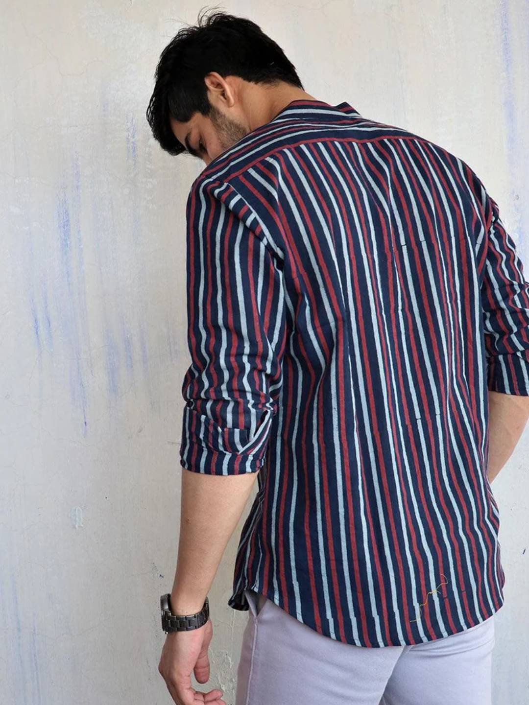 This Blue Stripe Block-Printed Men's Shirt is the perfect blend of comfort and style for