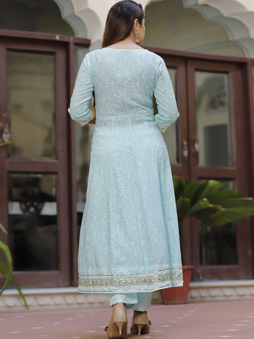 Blue and white kurta with trousers & dupatta