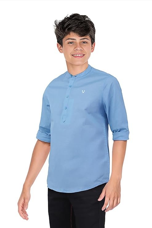 Boys 100% Cotton Solid Full Sleeve Mandarin Collar Shirt