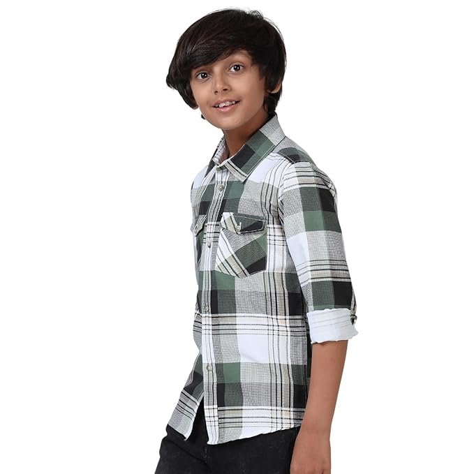 Checked Cotton Blend Doubel Pocket Casual Shirt.