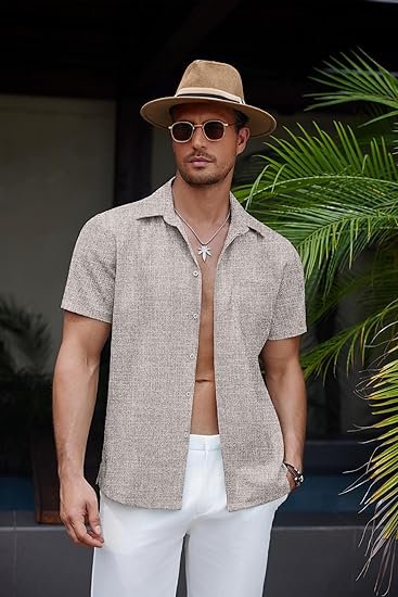 | UNLEASH YOUR SUMMER SPIRIT: The COOFANDY men's linen short sleeve button down shirt isn't just a casual untucked beach shirt. Its lightweight, breathable fabric makes it perfect for any summer activity, ensuring you stay comfortable, cool, and stylish whether you're lounging on the beach or attending a summer wedding CLASSIC AND CASUAL DESIGN: Elevate your style with the COOFANDY casual vacation wedding shirt, featuring a button down closure, short sleeve, and a convenient chest pocket. Designed to offer a versatile regular fit and loose fit, this casual untucked vacation wedding dress shirt enhances your summer style effortlessly A SUMMER WARDROBE MUST HAVE: The COOFANDY men's linen wedding dress shirt button up classic yet casual style is perfect for summer vacation. Match it with shorts for a relaxed beach day or dress it up with casual linen pants for a more polished dress look. The button down design and chest pocket add a touch of practicality and elegance, making it suitable for any summer and spring occasion PERFECT FOR EVERY SUMMER OCCASION: From beach parties and tropical getaways to casual vacations and weddings, coofandy cuban big and tall Hawaiian shirt is your go-to choice. Its casual elegance makes it suitable for every occasion, ensuring you always look your best. It's also an ideal gift for husbands, fathers, sons, and friends EASY BREEZY CARE: Keeping your summer style fresh is a breeze with the COOFANDY casual vacation wedding loose fit shirt. Simply machine wash and hang to dry. The durable fabric resists shrinkage and maintains its quality, ensuring you look sharp all season long. For the perfect fit, don’t forget to check our size chart before ordering |