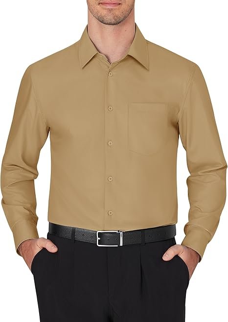 Men's Dress Shirts Wrinkle Free Long Sleeve Formal Shirt Solid Business Casual Wedding Button Do