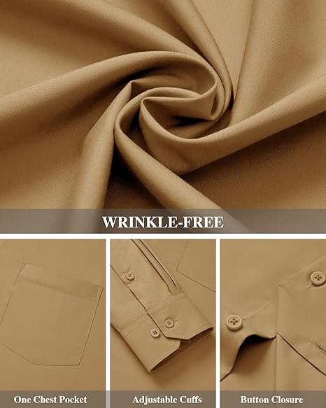 CLASSIC DESIGN: This wrinkle-free shirt features a single chest pocket for small items or decorations. Spread collar, button placket, adjustable cuffs for a classic look that flatters most body shapes