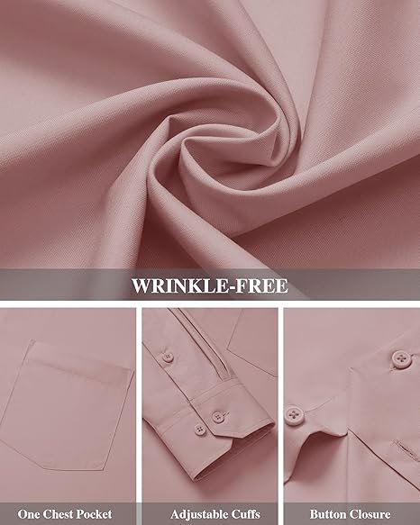 | WRINKLE-FREE: The mens dress shirt is made of high quality fabrics and special craftsmanship, wrinkle-resistant and easy to iron and care for, keep the appearance neat and clean, provide you with a comfortable wearing experience CLASSIC DESIGN: This wrinkle-free shirt features a single chest pocket for small items or decorations. Spread collar, button placket, adjustable cuffs for a classic look that flatters most body shapes OCCASION: Business/ Wedding/ Party/ Dating/ Office/ Nightclub, this mens formal shirt is the perfect choice for both formal events and everyday casual wear when paired with a suit, vest, bow tie, and dress pants Size: The button down long sleeve shirts are US regular fit tailoring style,a variety of sizes and colors for you to choose,please refer to the size chart to choose the size that suits you Washing Method: Mens shirt is recommended to hand wash or machine wash in cold water to protect the fabric's texture and color. The dress shirt can be ironed at low temperatures |