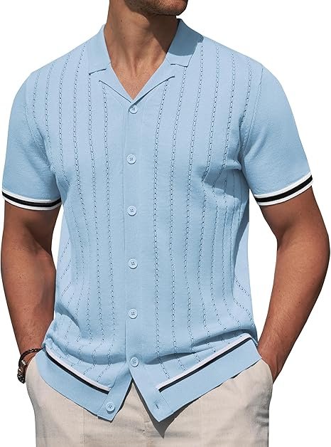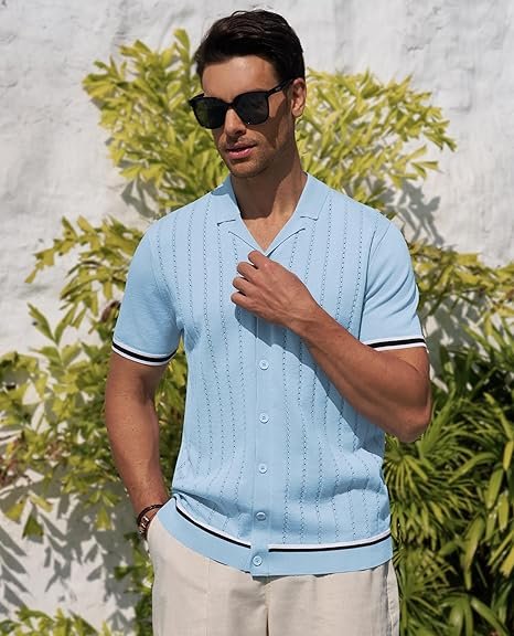 | KNITTED FRIBIC: Crafted from high quality knit fabric, COOFANDY knit polo shirts for men promises exceptional softness and breathability. Its elastic fabric is skin friendly and comfortable, ensuring slim fit without being tight. Vintage beach shirts for men providing you cool and relaxed feeling, perfect for winter spring and summer VINTAGE AND CASUAL: The retro knit shirt for men featuring a timeless classic button down closure, refined cable knit texture, regular loose fit, simple solid color, turn down collar, ribbed hem. Beach shirts for men shirts combines classic and modern, providing you a relaxed and fashion wearing experience in daily life VERSATILE AND STYLISH: Men's knit button up polo shirt combine comfort with versatile style. Pair with linen pants, sunglasses, sandal and a hat for a casual beach look, or pair with casual pants and leather shoes for an vintage elegant look. You can switch between beach and vintage styles at will MUTIPLE OCCASSION: From beach vacation and golf course to business trip and casual daily wearing, the knit polo shirts for men is must have choice. This COOFANDY shirt for men casual inspired cable texture and summer beach vibes, making it casual and elegance. Let you exude charm anywhere WARM TIPS: Machine washable. This mens knit polo shirt is durable and resist shrinkage. Please refer to the size chart of casual crochet knitted shirts for men in the product description to choose best fit for you |