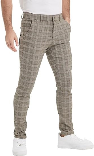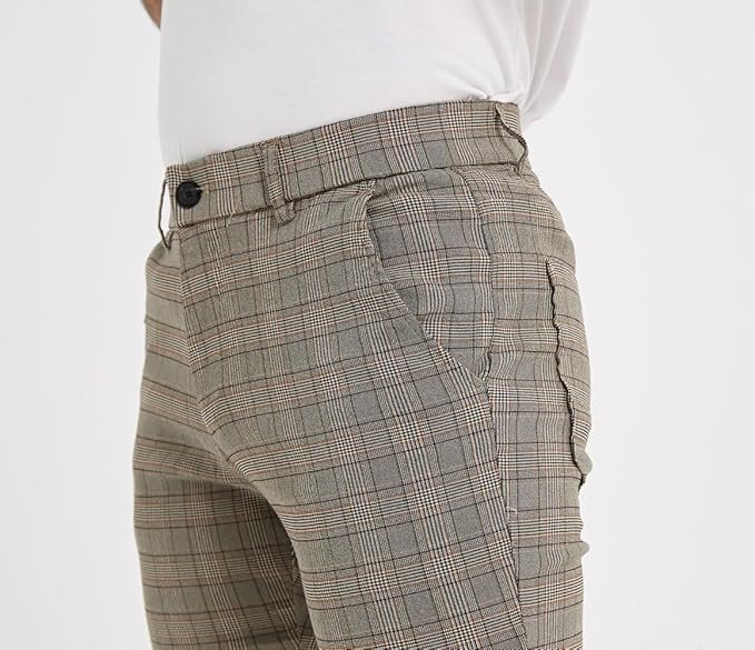 | Skinny fit through hip and thigh, these plaid pants for men sit at the natural waist; the innovative mens plaid dress pants bring younger looking. ALL-DAY COMFORT. Made from a nylon &viscose blend with added spandex that moves with you for all day comfort. Throw together an effortless look with these skinny pants for men. With these mens skinny dress pants, we make looking great incredibly easy. Keep it casual and stylish as you step out wearing the mens skinny pants, these men's skinny dress pants can keep you comfort all day. Whether you step into the office or step out on the weekend, our men's skinny chinos fit your needs perfectly. Thank to the TR fabric with flex, even they are Skinny fit, you can still move and walk freely wearing these mens fashion pants. And these fashion pants for men bring a sleek silhouette. Pinstripe pants for who want a more modern feel with the refined extra slim fit, the style it's good for dress up and dress down. |