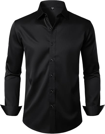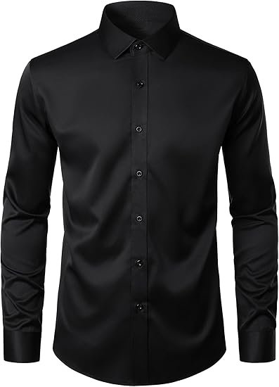 | Care: Machine wash,tumble dry or line dry,low temperature ironing Slightly Shiny Fabric:Like satin silk, this shirt has more shiny than cotton dress shirts. It is soft and comfortable to the touch, cool and smooth, beautiful and eye-catching, making it very suitable for weddings, balls, parties, and other events. If used in work or business occasions, it might be too shiny Slight Elasticity:Due to the fabric containing only 5% spandex, the elasticity is relatively weak. The elasticity of this shirt runs horizontally from left to right. Polyester-spandex blended fabric offers excellent stability,low shrinkage rate, durable Slim Fit:Compared to classic slim fit shirts, this shirt has longer sleeves and a slightly wider waist. If you prefer an extremely fitted look, we recommend choosing a smaller size Wrinkle-Free:Due to packaging reasons, the shirt may need ironing before its first use; "wrinkle-free" means that the shirt has been treated to be less prone to wrinkles compared to regular clothing, making it easier to care for. However, this does not mean that it will never have wrinkles |