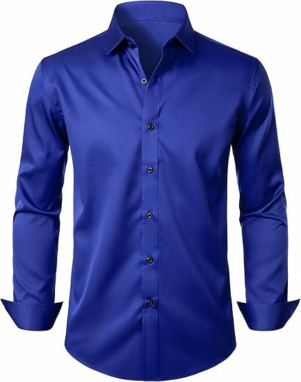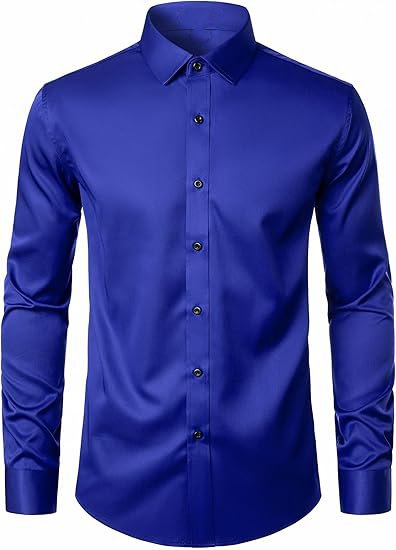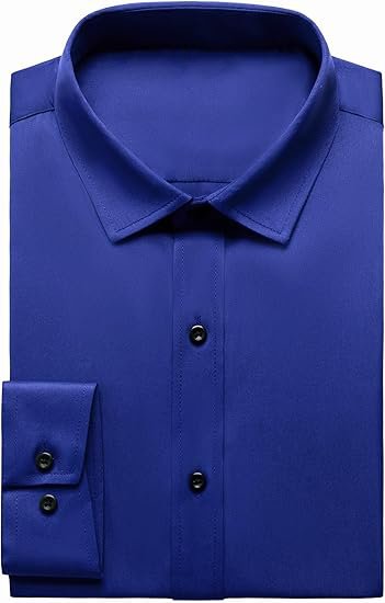 Men's Stretch Wrinkle Free Dress Shirts Formal Wedding Prom Long Sleeve Slim Fit Button Down Shi