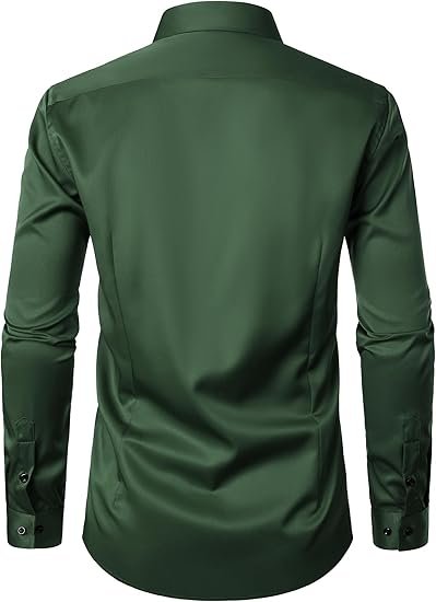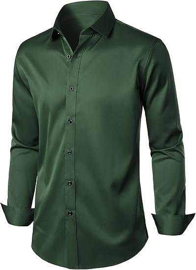 | Care: Machine wash,tumble dry or line dry,low temperature ironing Slightly Shiny Fabric:Like satin silk, this shirt has more shiny than cotton dress shirts. It is soft and comfortable to the touch, cool and smooth, beautiful and eye-catching, making it very suitable for weddings, balls, parties, and other events. If used in work or business occasions, it might be too shiny Slight Elasticity:Due to the fabric containing only 5% spandex, the elasticity is relatively weak. The elasticity of this shirt runs horizontally from left to right. Polyester-spandex blended fabric offers excellent stability,low shrinkage rate, durable Slim Fit:Compared to classic slim fit shirts, this shirt has longer sleeves and a slightly wider waist. If you prefer an extremely fitted look, we recommend choosing a smaller size Wrinkle-Free:Due to packaging reasons, the shirt may need ironing before its first use; "wrinkle-free" means that the shirt has been treated to be less prone to wrinkles compared to regular clothing, making it easier to care for. However, this does not mean that it will never have wrinkles |