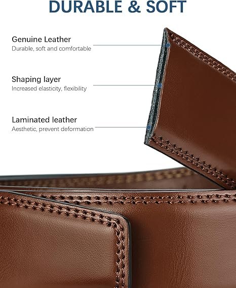 | Easy to Use: Loosen and tighten as needed in a second. Just slide the belt into the buckle and pull the leather belt through, the buckle simply auto locks the belt, releasing the buckle by simply shifting the small lever. Cuttable Design: Do You always had issues with belt buckles digging into and always being too big or too small? this leather belt for men come with a long leather belt strap that has lines and sizes so you can cut for optimum length. |