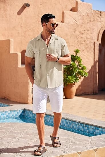 | LIGHTWEIGHT AND COMFORT: The COOFANDY Men's Short Sleeve Casual Shirt prioritizes comfort without compromising on style. The inclusion of soft fabric not only ensures a silky feel but also enhances breathability; allowing for a comfortable wearing experience throughout the day MODERN LOOK: Embrace a modern aesthetic with men's short sleeve shirt; the urban design features classic shirt collar; button closure; timeless solid color and a regular fit tailored to complement most body types. This shirt effortlessly combines timeless style with contemporary flair, making it a versatile addition to your wardrobe EASY TO MATCH: A new fit for COOFANDY, Relax it's summer you have earned it; Whether paired with chinos or jeans for casual wear or dressed up with formal pants for special occasions, this shirt effortlessly adapts to your style, offering flexibility for a range of outfit choices MULTIPLE OCCASIONS: This men's casual dress shirt is suitable for a variety of occasions; From weddings and date nights to business meetings and daily casual wear, it effortlessly transitions between different settings; Versatility is key, making it an ideal choice whether worn alone or as a base layer for additional styling options WARM TIPS: Machine washable for Mens Button Up Shirt. The convenience of easy care adds to the overall appeal of this exceptional garment. Please refer to our size chart carefully before you order |