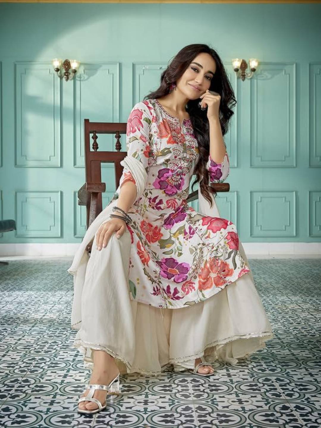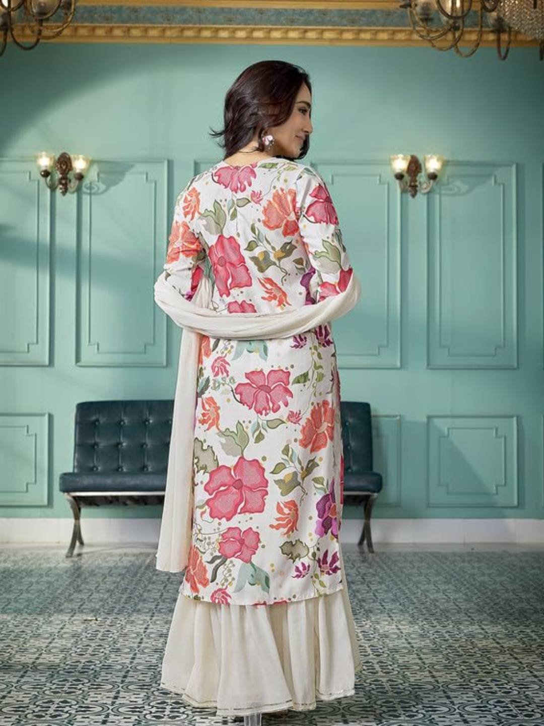 • Kurta Fabric- Viscose, Sharara Fabric- Viscose, Dupatta Fabric- Chinon || Kurta Color- Multicolor, Sharara Color- Multicolor, Dupatta Color- Multicolor