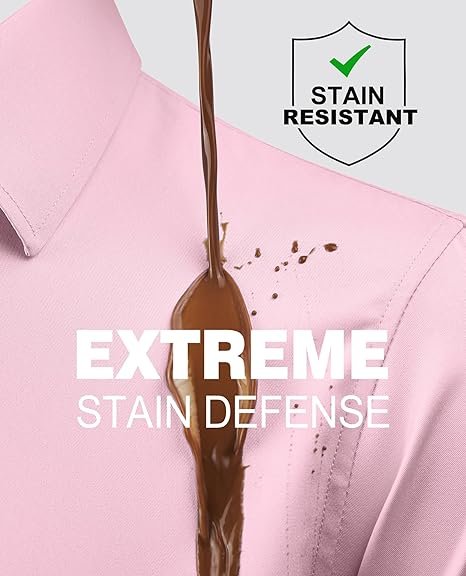 Stain Proof Mens Dress Shirts: Designed with Stain Shield technology material that blocks tough stains/most Oil-based spills before they start and makes to have stains literally roll off the dress shirts long sleeve, and keep clean and elegant all time