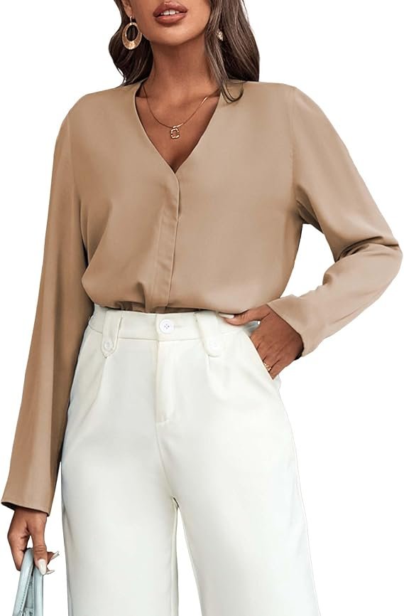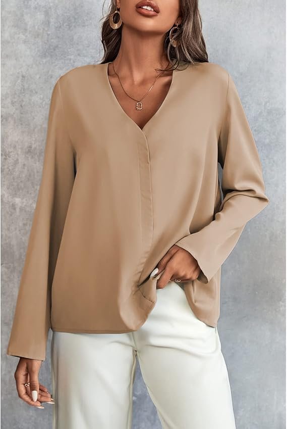 | Please choose the right size according to the size chart in the picture. Simple and elegant style, the buttonless and collarless design makes this shirt both classy and trendy. This cute shirt can be dressed up and down. It is easy to match with leggings, dress pants, jeans, jacket, coat. Suit for casual, business, office, dating, daily wear, work wear or other formal occasions, fits to any season. Hand wash or machine wash in laundry bag, easy to iron. |