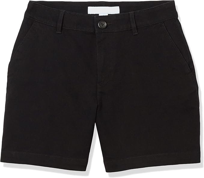 | STRAIGHT FIT: Slim fit through the hip and thigh, straight through the thigh and leg opening. Also offered in Curvy sizes for a curvier fit through the hip and a narrower waist. STRETCH COTTON TWILL: Washed for softness, this cotton twill is naturally breathable and has a bit of stretch for comfort and flexibility. CLASSIC BLACK SHORT: These classic Black shorts are the ultimate summer style. Offering a clean, gently structured silhouette, these shorts also fit with comfort and ease for at work, weekend exploring, or running errands. Complete your look with Amazon Essentials Women's Sneakers or Sandals. |
