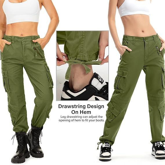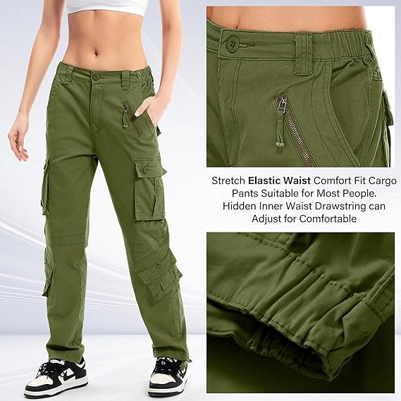 | Cargo pants for women sits at waist, loose fit, straight leg, ties at the waist and legs,A comfortable casual pant for outdoor activities and relaxing weekends. Classic camo pants with Multi-Pocket: Women casual loose pants features 8 Pockets include (2) front hand pockets; (2) buttoned cargo pockets; (2) leg pockets; (2) buttoned rear pockets. 95% Cotton,5% Spandex, Sweat-absorbent,Wear and stain resistant Cotton breathe freely, wrinkle resistant, stylish, and stretch fabric for enhanced movement and comfort. These cool girl style cargo pants can be paired with crop tops, basis T-shirts, cool jackets, casual hoodies, high heels, sneakers, etc. for spring, summer, fall and winter. |
