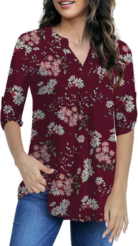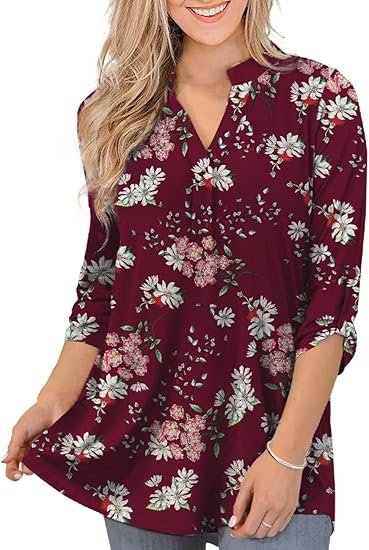 Womens Tops Dressy Casual 3/4 Sleeve Shirts Tunic Blouses Plus Size Tops for Women