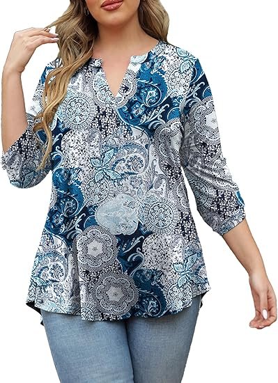 Womens Tops Dressy Casual 3/4 Sleeve Shirts Tunic Blouses Plus Size Tops for Women